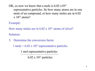Converting particles to moles. Particles x 1 mol 602x1023 representative particles converting moles to particles. Chemistry - Bruce Averill 2007.